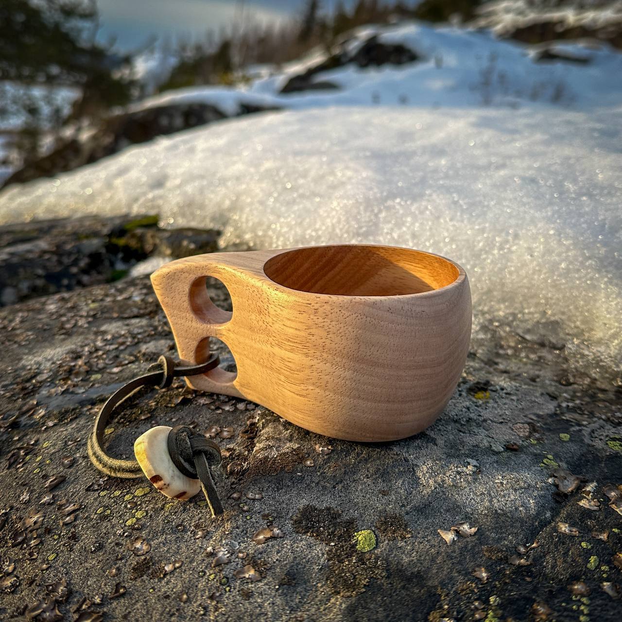 В каждой линии этой куксы - отзвук песни Вяйнемёйнена. Как он из челюсти щуки создал кантеле, так и здесь: дерево оживает, храня память о временах, когда человек и природа говорили одним языком. Эта чашка - словно тихий гимн той древней гармонии.