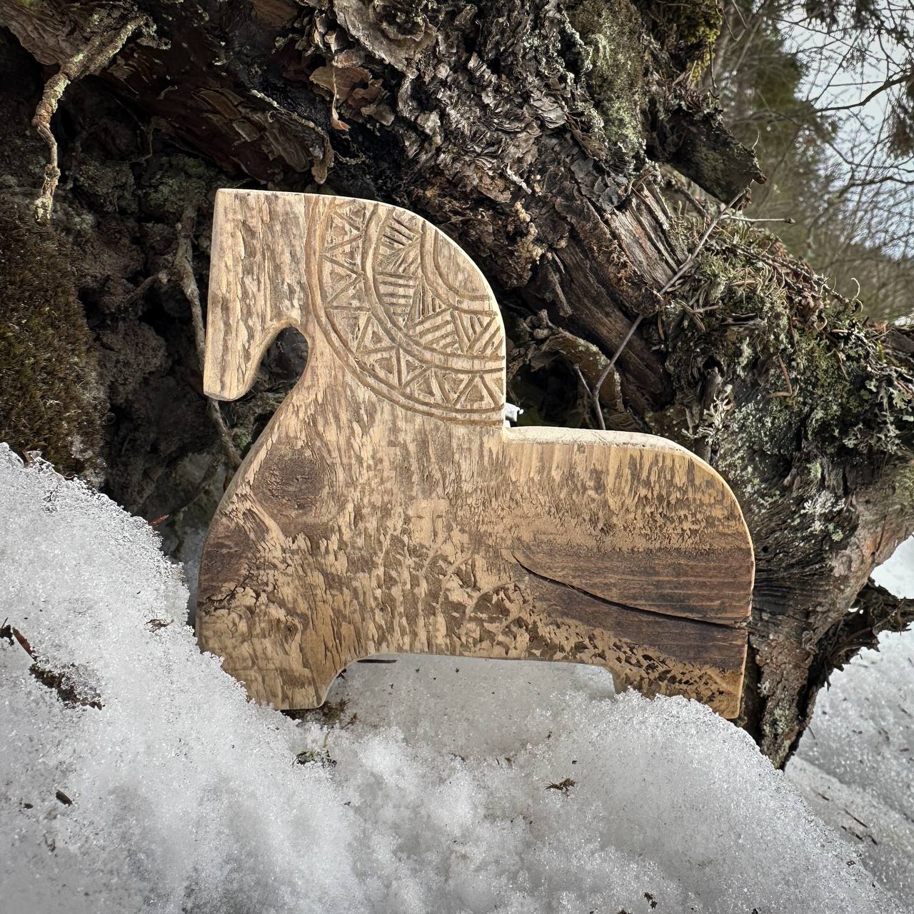 Конь в карельской традиции - не просто животное, а символ света, радости и солнечной силы, связующий мир людей с миром предков. Его изображение на прялках и других предметах обещало плодородие и достаток, а деревянные игрушечные кони, вырезанные из древесных обломков, становились оберегами для детей.